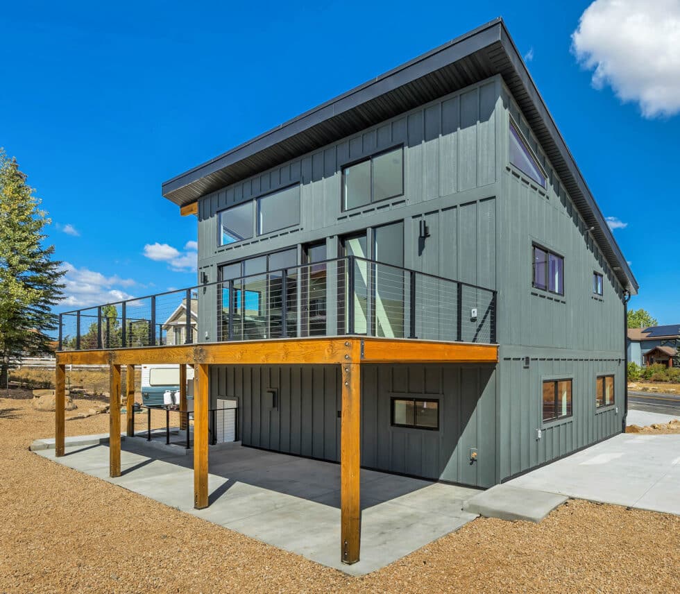 - Architectural Elements: The exterior showcases a beautiful contrast between sleek dark siding and warm, exposed natural wood beams.