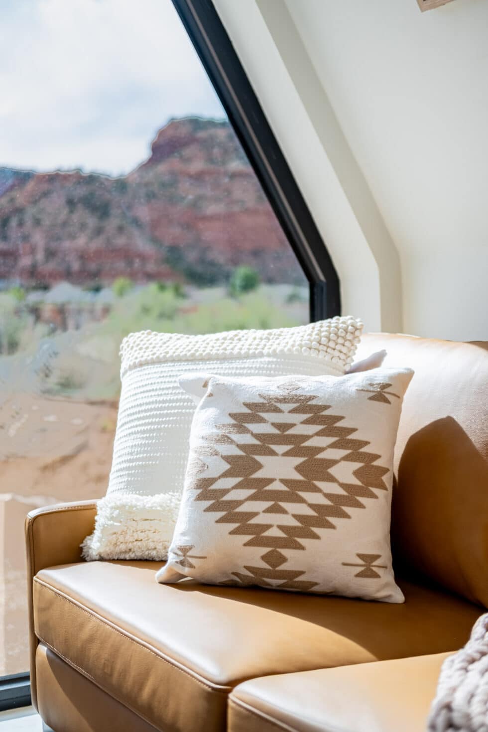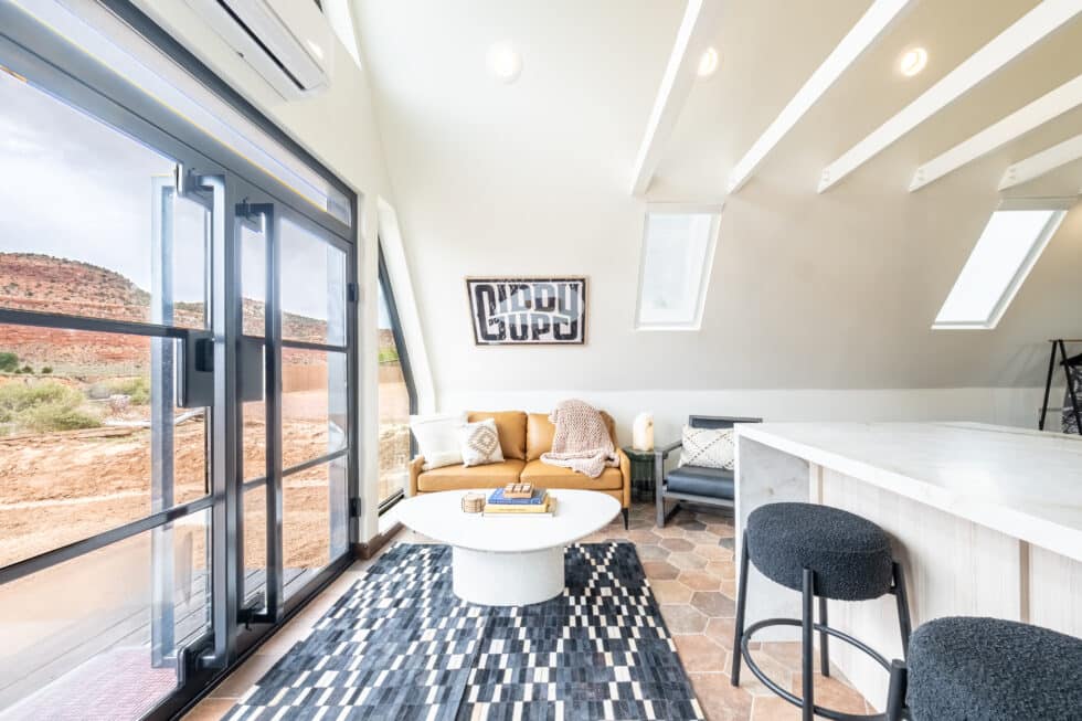 - Full Glass Front Windows: Expansive, full glass front windows serve as a stunning focal point, flooding the interior with natural light and offering panoramic views of the surrounding Kanab landscape.