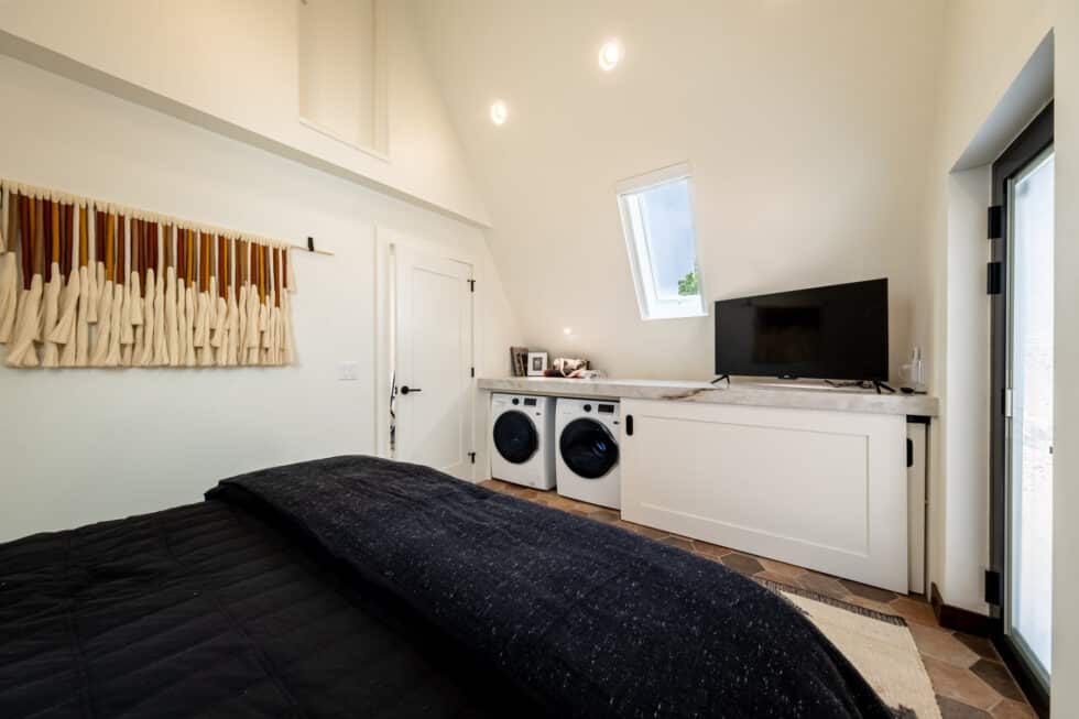 This A-Frame home in Kanab embodies a perfect blend of modern design and pastoral charm, seamlessly integrating with the stunning natural landscape. Our collaboration with Tali Design yielded a unique residence that boasts both striking visual appeal and practical living spaces, meticulously designed for comfort and seamless connection to the outdoors.