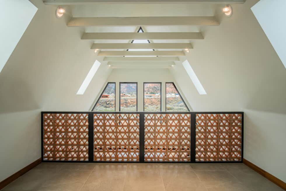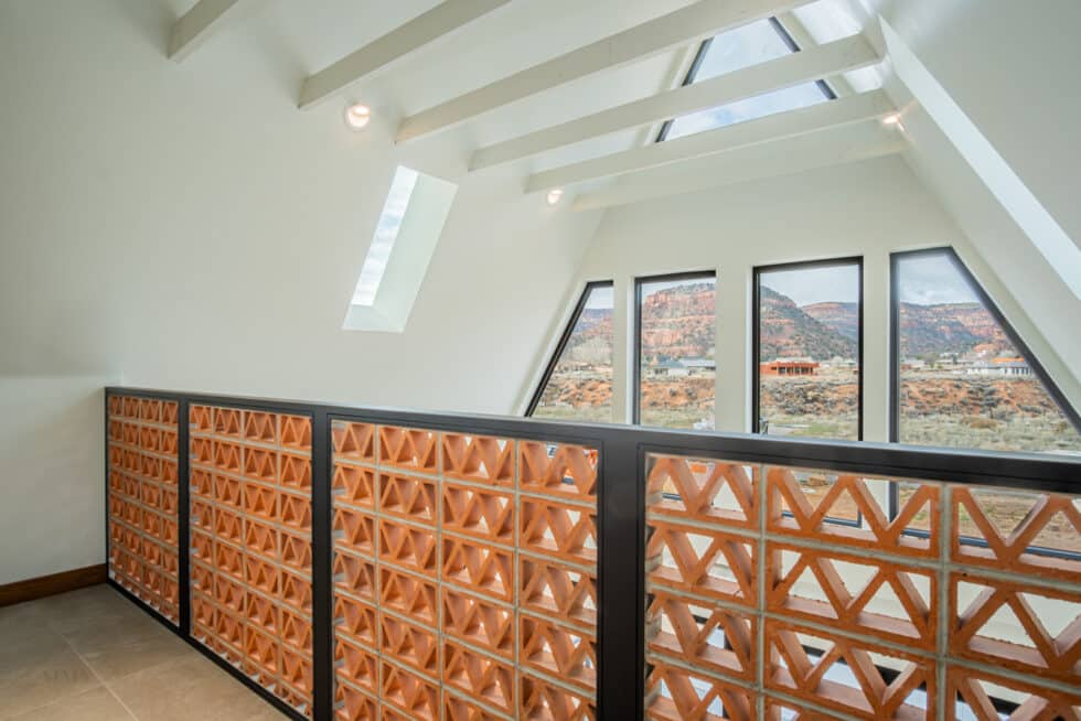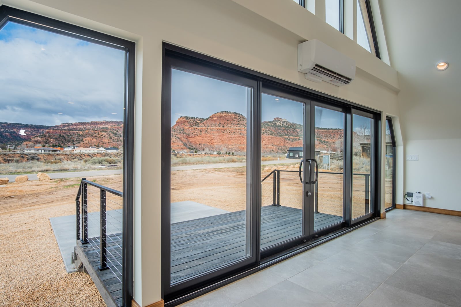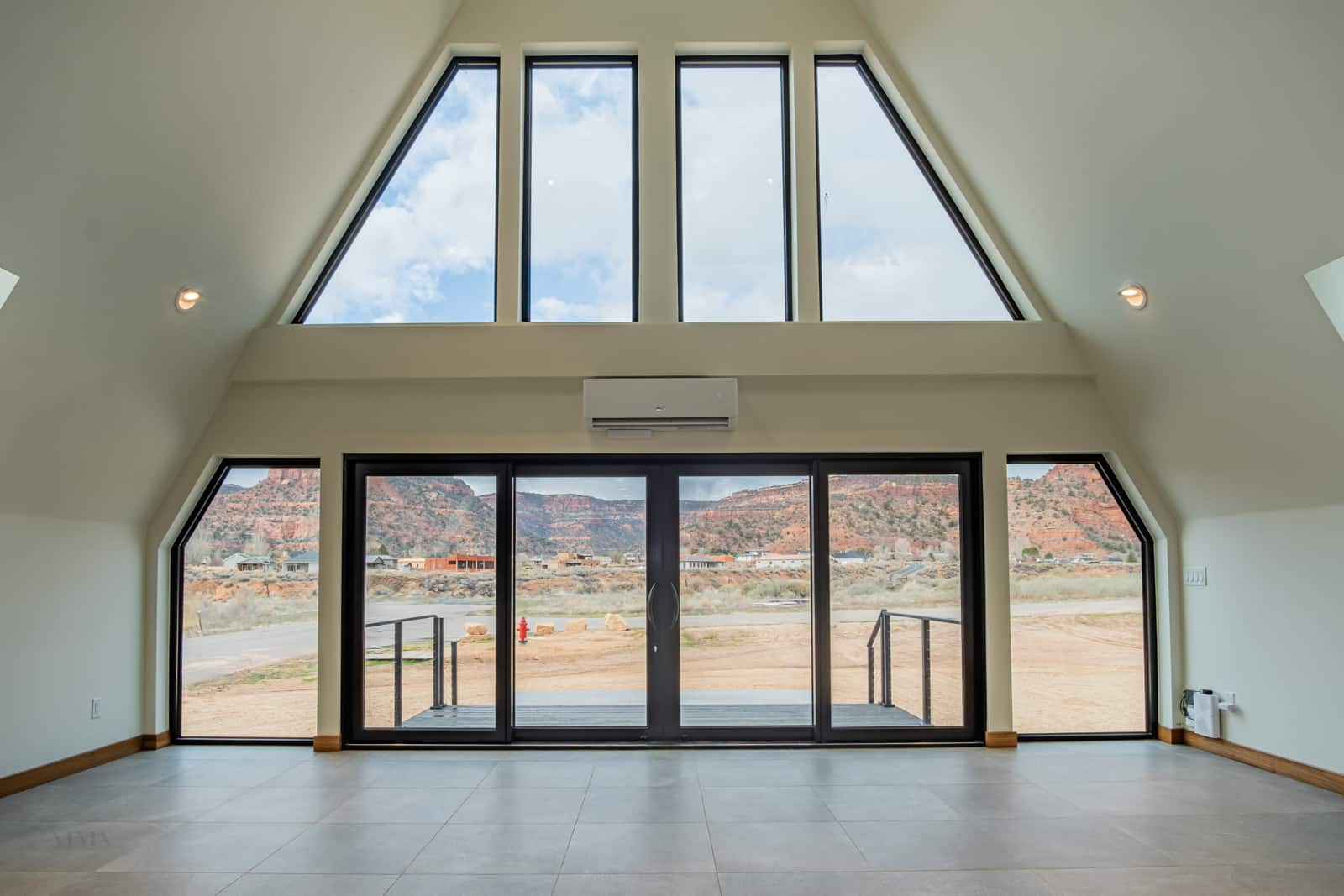 Soaring Glazed Façade: A custom-built, floor-to-ceiling window wall that frames panoramic views of the red rock landscape.